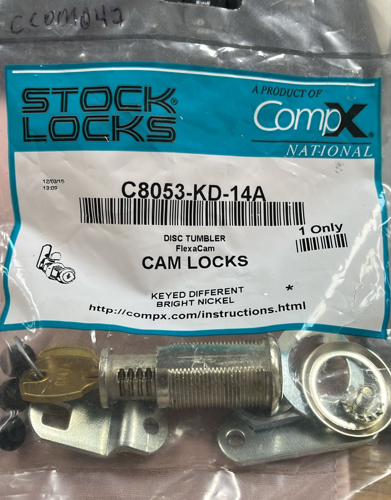 Stock Locks/ COMPX/ C8053-KD-14A /Cam Lock Bright Nickel Keyed Diff. Disc Tumbler CCOM047